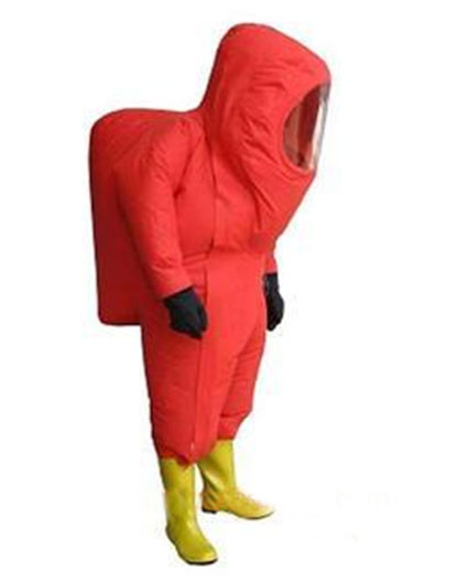 全密封防化服是消防员进入化学危险物品或腐蚀性物品火灾或事故现场,以及有毒、有害气体或事故现场,寻找火源或事故点,抢救遇难人员,进行灭火战斗和抢险救援时穿着的防护服装。防酸渗透性能(80%H2SO460%HNO330%HCL);60min不渗透防碱渗透性能(6.1mol/LNaOH);60min不渗