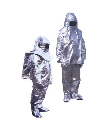采用纤维织物与镀铝薄膜的复合材料制作,服装包括上衣、裤子、手套、头罩和盖脚,不含石棉,具有双重轻、强度高、阻燃、耐高温、抗热辐射、耐磨、耐折以及对人体无毒害等优点,能有效地保障消防队员和高温作业人员不被烈焰、高温灼伤。能有效地保障消防队装备质量监督检验中心检测合格,符合GA88《消防隔热服性能要求及试验方法》以及《国际消防安全系统规则》的要求。船用防护服经中国船级社检验合格。