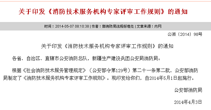 关于印发《消防技术服务机构专家评审工作规则》的通知